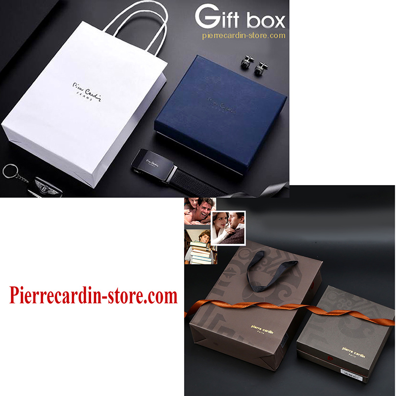 - Các sản phẩm của Pierre cardin thường có đầy đủ túi xách, hộp cứng. Túi và hộp thường có 3 màu chủ đạo là xanh, nâu, trắng, đỏ tươi ( tùy từng mẫu ),Túi và hộp thường làm bìa khá cứng cáp và lịch sự, Trên túi và hộp đều in logo rất sắc nét, Không như những hãng khác, túi, hộp thắt lưng Pierre cardin khá lớn dao động từ 180 x 200 x 50 mm đến 220 x 250 x 80 mm. Trên một vài mẫu có in cả mã QR. ( túi và hộp thắt lưng nhập khẩu không giống túi và hộp dành cho quần, áo làm bằng bìa mỏng có màu đỏ và ghi)